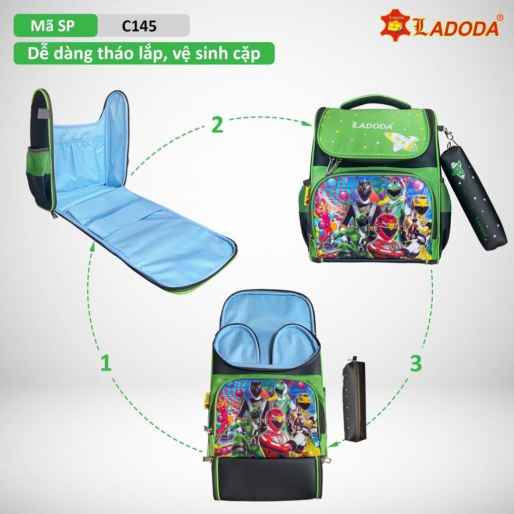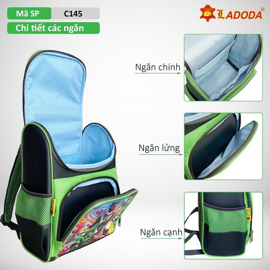Balo chống gù chính hãng Ladoda với thiết kế nhỏ gọn, ôm sát phần vai, lưng và hông giảm nhẹ áp lực cho cột sống của bé, giúp bé đi lại và vận động được dễ dàng. Quai đeo được thiết kế bằng loại vải lưới xốp thoáng khí giúp bé luôn có cảm giác dễ chịu không bị đau mỏi vai và lưng. Nguyên liệu vải dù xốp cao cấp thoáng khí, và chống nước, mềm mại với làn da của bé. Balo có thể mở phẳng toàn bộ, cùng lớp lót chống thấm bên trong nên dễ dàng vệ sinh làm sạch cặp cho bé. Khóa kéo siêu bền, kéo trượt nhẹ nhàng mà không lo gãy khóa, đứt khoá. Thiết kế gồm nhiêu ngăn thông minh giúp sách vở không bị sô lệch gồm 1 ngăn chính và 1 ngăn phụ bên trong, 1 ngăn phị bên ngoài cùng 2 ngăn bên hông. Sản phẩm được bảo hành chính hãng 12 tháng, giao hàng trên toàn quốc.