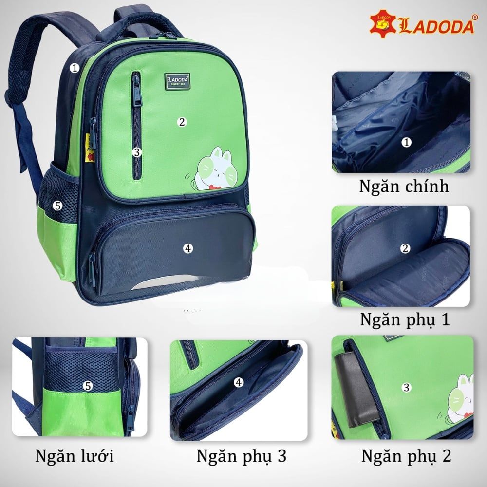 2. Cấu tạo sản phẩm: - Kích thước: 39x29x12cm. - Trọng lượng: 500gr. - Sản phẩm gồm 1 ngăn chính, bên trong có vách ngăn đựng giấy kiểm tra, bảng vv... - 2 ngăn ngoài đựng thước kẻ, hộp bút. và đồ dùng cá nhân. - 1 ngăn nhỏ đựng khẩu trang, ví vv... - Bộ quai đeo có tăng cong điều chỉnh độ ngắn dài giúp ba lô ôm sát lưng người sử dụng. Trong quai đeo và lưng được đệm xốp PE FOAM êm vai, thấm mồ hôi. Bề mặt quai đeo lót lưới thoáng khí thấm mồ hôi