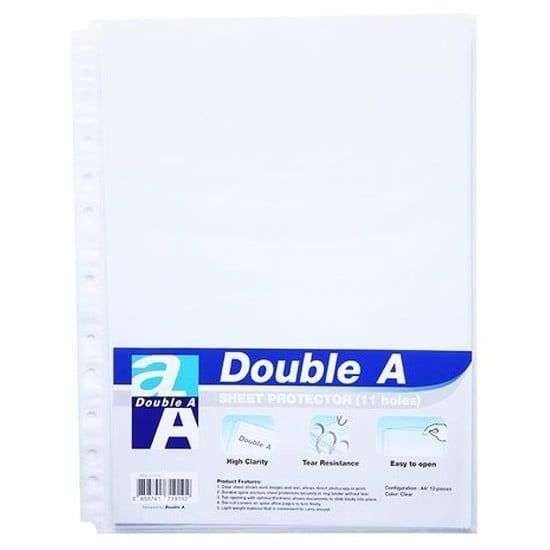 [DOUBLE A] Túi Lỗ Double A (10 chiếc/tập) sản phẩm chính hãng MÔ TẢ SẢN PHẨM: - Thương hiệu: DOUBLE A - Mã sản phẩm: DBSML - Độ trong suốt cao, có thể photo trực tiếp Sản phẩm có thiết kế lỗ đục Giúp gắn vào các loại bìa cứng một cách nhanh chóng Thông dụng, tiện lợi, dễ dàng cất trữ các tài liệu. Bìa Lỗ Double A với kích thước bìa A4 thông dụng, tiện lợi, dễ dàng cất trữ.