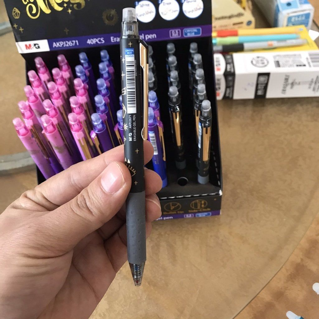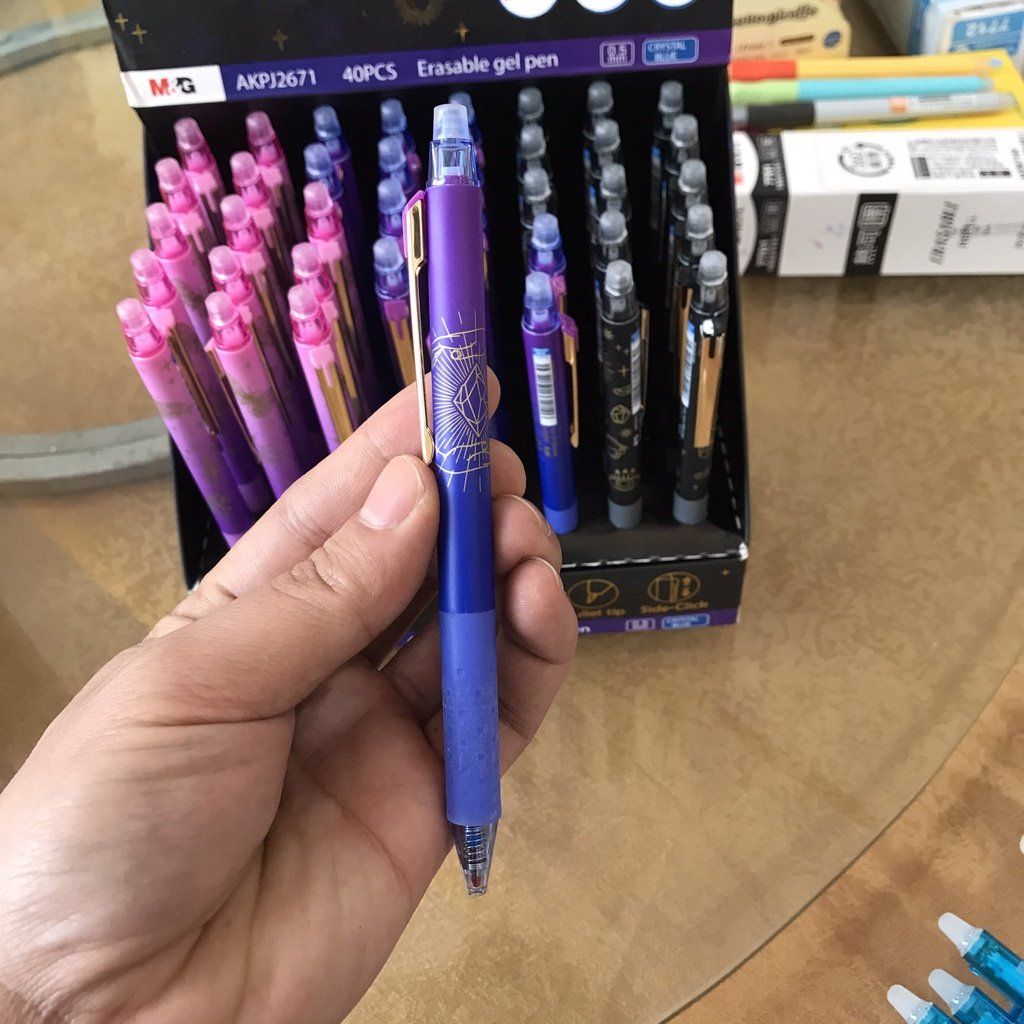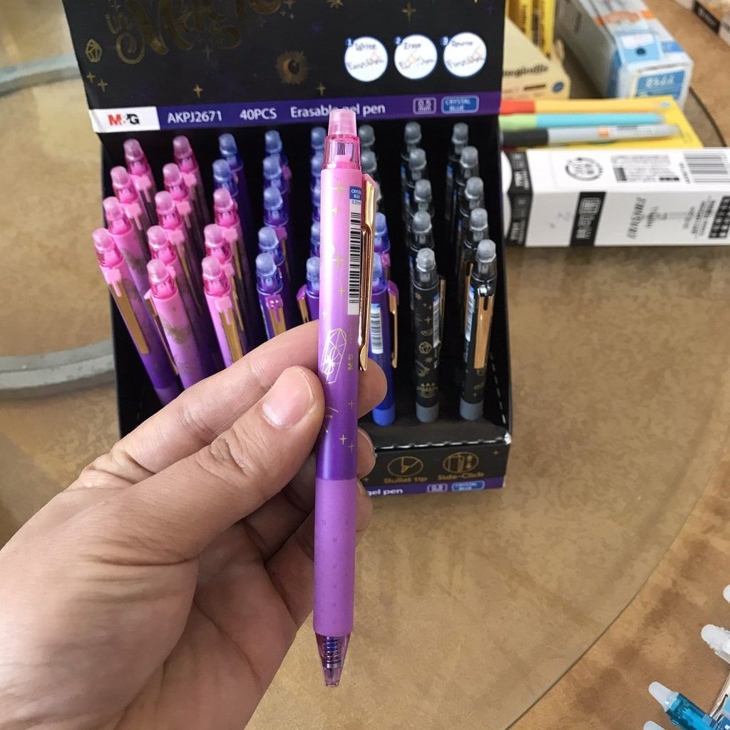 Bút Bi Tẩy Bấm AKPJ2671 Thông Số Sản Phẩm - Mực : có thể tẩy xóa và viết lại - Kiểu bút : bấm ngòi - Nét viết : 0.5mm - Màu thân vỏ : có 4 màu Đặc Điểm Sản Phẩm - Bút bi tẩy AKPJ2671 là dòng sản phẩm chất lượng của M&G, với công thức mực độc đáo giúp màu mực đậm, đều nét và sáng màu. + Chức năng tẩy xóa rất tiện dụng dựa trên tính năng ma sát sinh nhiệt. + Bút có kiểu bấm tiện dụng và cây bút cũng rất đẹp mắt. + Màu sắc vỏ ấn tượng với gam màu lạnh, giúp việc sử dụng được hiệu quả và vui vẻ hơn. + Đầu bi viết cực kỳ êm trơn và đều nét. + Ống mực lớn hơn giúp viết được lâu hơn và tiết kiệm hơn. Thương Hiệu Nổi Tiếng + Bút bi tẩy AKPJ2671 là dòng sản phẩm bút tẩy chất lượng được sản xuất bởi tập đoàn M&G, thương hiệu nổi tiếng số 1 về dụng cụ viết tại Trung Quốc, với tiêu chí chất lượng là hàng đầu và sứ mệnh giúp việc học tập trở lên vui vẻ và hiệu quả hơn. Cảm ơn bạn đã tin tưởng và đồng hành cùng M&G! #but_tay #mg #akpj #2671#but_tay_xoa_duoc_frixion #m&g #chenguang