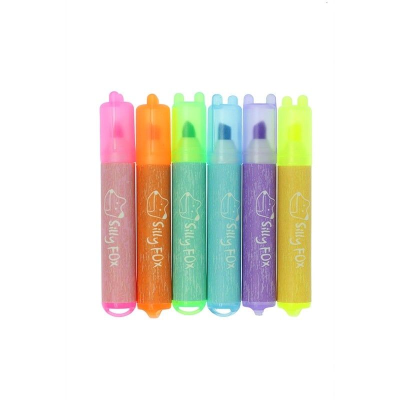 Hộp 6 BÚT 6 MÀU DẠ QUANG Mini SillyFox 22506 - Màu sắc: 6 màu bút: Xanh lá, Hồng, Cam, Vàng dạ quang, Xanh dương, tím - Kiểu dáng: Tròn đều dễ cầm, gọn nhẹ, kết hợp kiểu mèo ngộ nghĩnhmàu khác nhau xinh xắn - Kích thước bút:± 7cm (chiều cao bút) - Kích thước Túi SP: 9.5 x 6.8x1.3(cm) (DxRxC) - Bút dạ quang M&G vỉ 6 cây AHM22506 là sản phẩm chuyên dụng làm nổi bật những thông tin quan trọng, giúp bạn đọc tài liệu một cách dễ dàng. Bộ sản phẩm gồm 6 màu sắc thông dụng, tiện lợi cho người sử dụng. Sản phẩm thích hợp cho nhiều đối tượng như: nhân viên văn phòng, học sinh, sinh viên - Sản phẩm được đặt trong vỉ nhựa tiện lợi, dễ dàng cất trữ, bảo quản và mang theo khi cần thiết. - Đầu bút vạt chéo thông minh, kích thước bút nhỏ gọn giúp người dùng làm nổi bật thông tin một cách nhanh chóng, thao tác linh hoạt hơn.