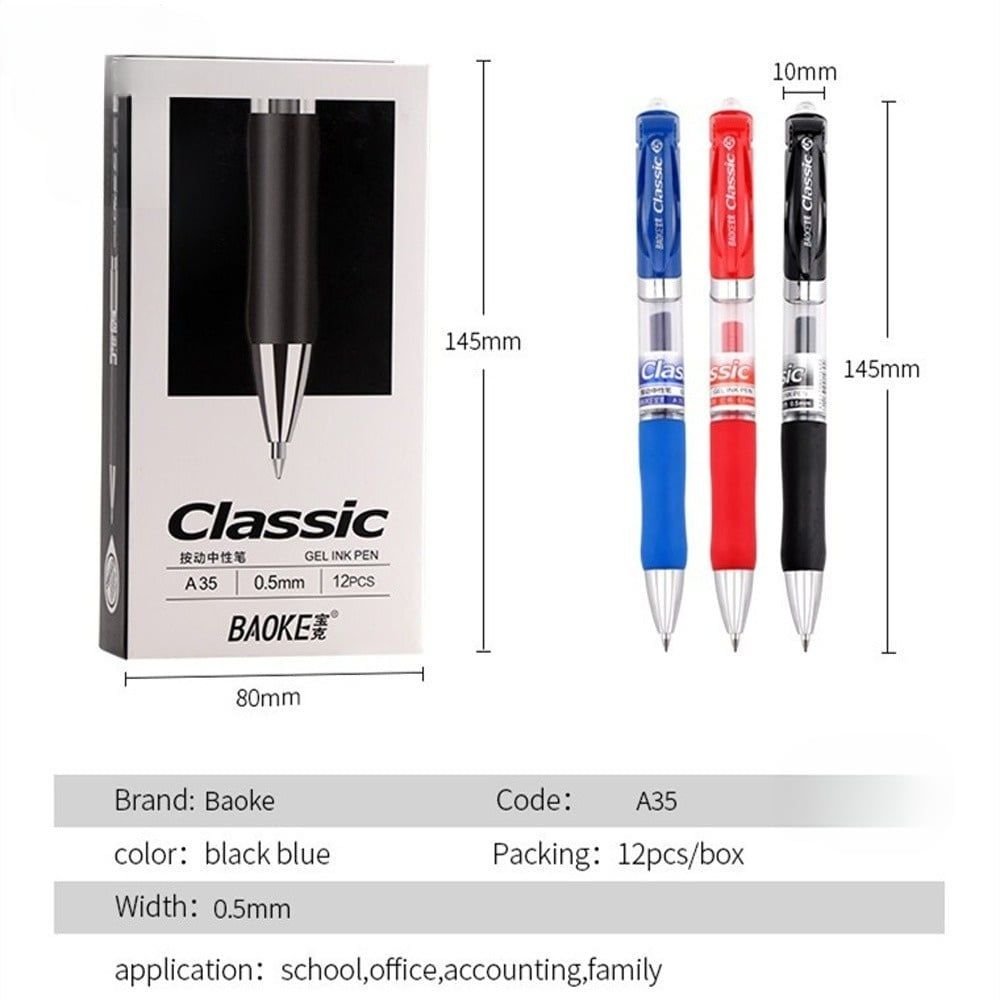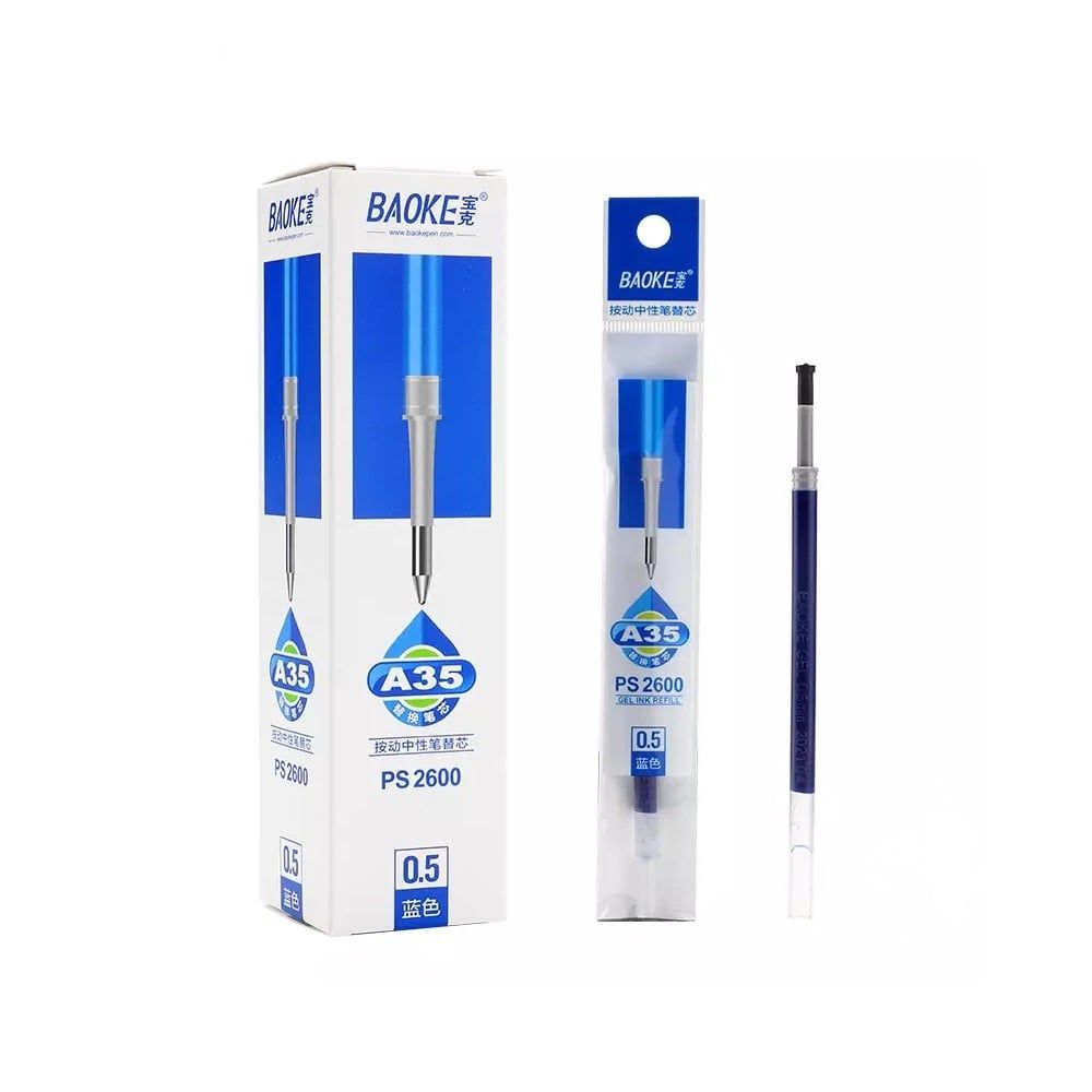 Bút gel 0.5mm Baoke A35 mực xanh/mực đen/mực đỏ/mực tím và Ruột bút thay thế Baoke PS2600 (12 Cây/Hộp)