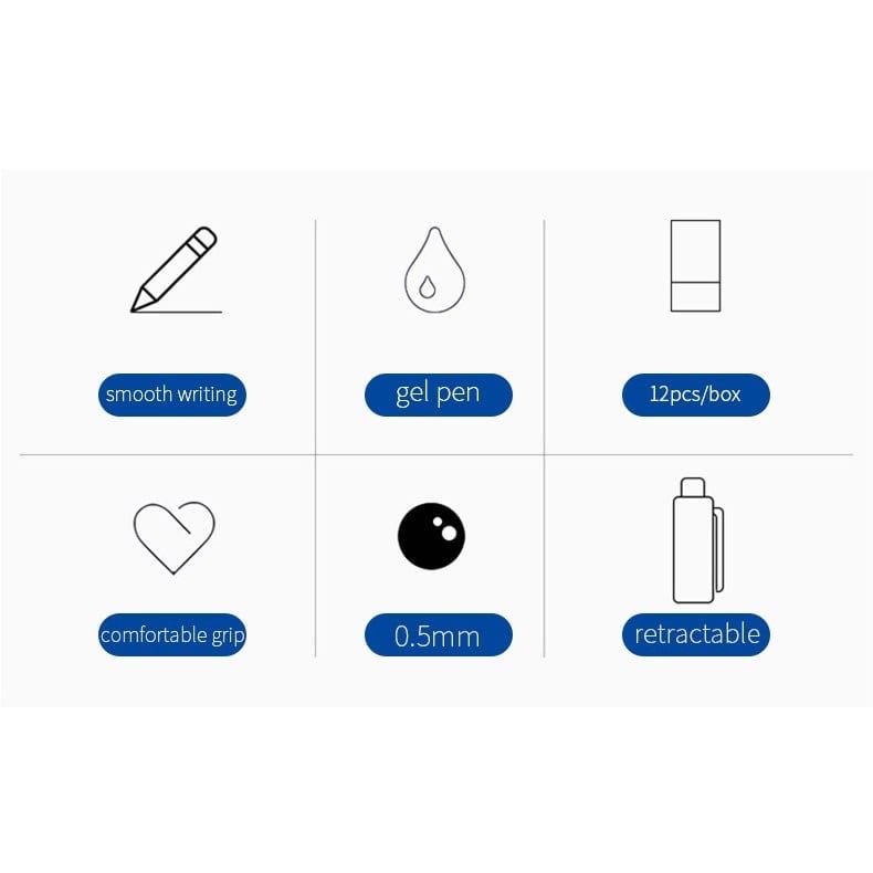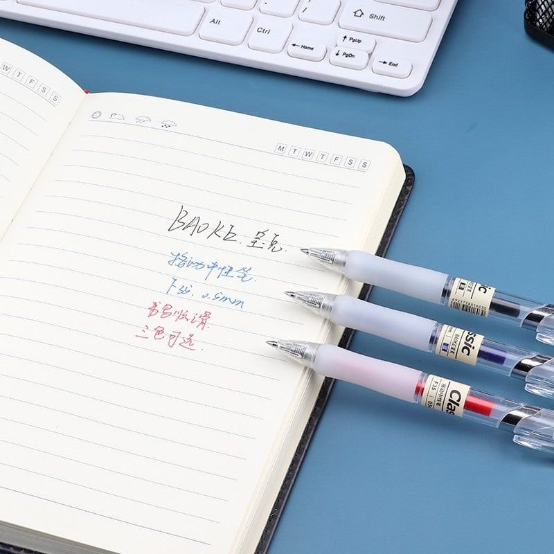 Bút gel 0.5mm mực xanh/mực đen/mực đỏ thân bút màu trắng sang trọng không trơn tay (sản phẩm chính hãng)