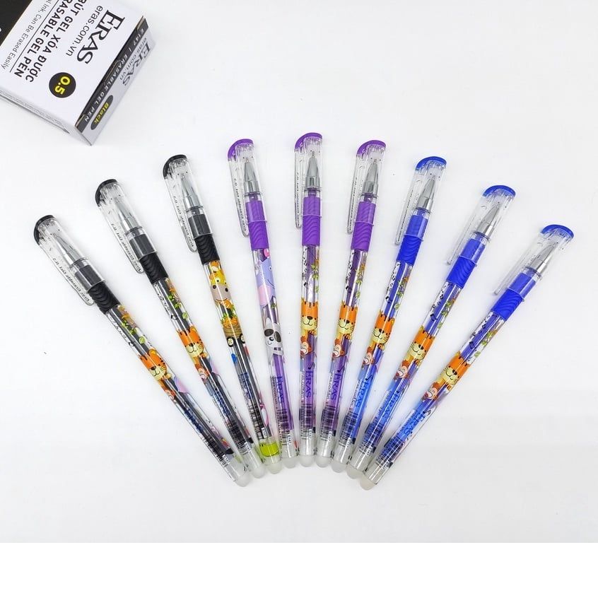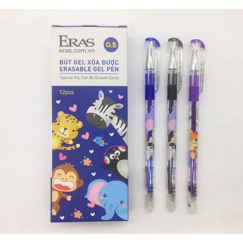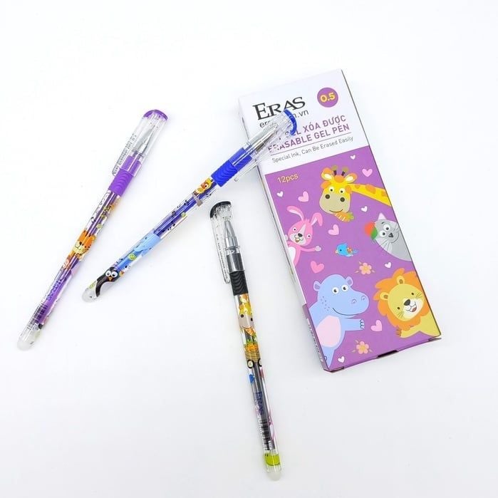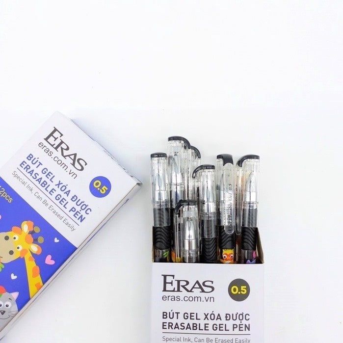 [ERAS] Bút Gel tẩy được Eras E147 sản phẩm chính hãng MÔ TẢ SẢN PHẨM: - Thương hiệu: ERAS - Mã sản phẩm: E147TERAS - màu mực: Xanh/tím. BẢO QUẢN: Luôn luôn đậy nắp sau khi sử dụng Vài loại giấy (như giấy nhiệt) có thể không phù hợp để xóa. - Dạng bút gel đậy nắp. - Bút gel xóa được. - Công nghệ mới trên thế giới. - Mực gel xóa được bằng gôm tẩy chuyên dụng Mực an toàn, không độc hại cho người sử dụng Bút viết êm trơn hơn, mực ra đều và hạn chế tắc mực. LƯU Ý: - Không sử dụng viết, ký tên trong các giấy tờ quan trọng có tính pháp lý hoặc dùng để viết trong thi cử. - Không lưu trữ hoặc trưng bày bút ở nhiệt độ dưới 20 độ C và trên 65 độ C. ----------------------------------------------------------------- * Quý khách vui lòng liên hệ shop để được tư vấn * Hotline - zalo: 0355238747