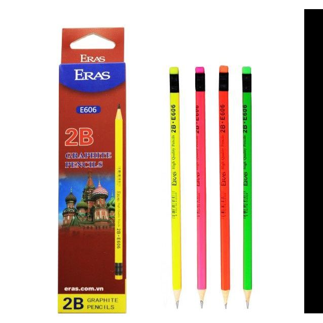 [ERAS] Chì gỗ sơn màu 2B có tẩy Eras E606 sản phẩm chính hãng