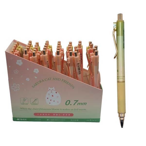 [M&G] Bút chì kim M&G Mèo Sakura và những người bạn MÔ TẢ SẢN PHẨM: - Thương hiệu: M&G - Mã sản phẩm: AMPJ6108 - Bút chì với năng vượt trội khiến mẫu bút này trở thành một trong những lựa chọn hàng đầu cho loại bút chì tốt nhất. - Đây chắc chắn. - Là sản phẩm mà bạn không thể bỏ qua nếu đang tìm kiếm một công cụ hỗ trợ tuyệt vời cho công việc và học tập. - Thiết kế tinh tế Bút chì kim sắt được làm bằng kim loại cao cấp, sở hữu kiểu dáng thiết kế rất bắt mắt và tinh tế do được phủ lớp sơn sang trọng. - Có thể nói, mẫu mã đẹp chính là một trong những yếu tố quan trọng khiến người tiêu dùng rất yêu chuộng loại bút chì này. - Vì được làm bằng chất liệu cao cấp nên bút đảm bảo tối đa sức khỏe người sử dụng, mang lại độ bền cao. - Thân bút chì được thiết kế theo dạng lục giác độc đáo, giúp bạn dễ dàng cầm nắm, hạn chế mỏi tay khi dùng lâu. - Ngoài ra, thiết kế này cũng ngăn không cho bút lăn khỏi bàn, tránh rơi rớt, làm hỏng bút.