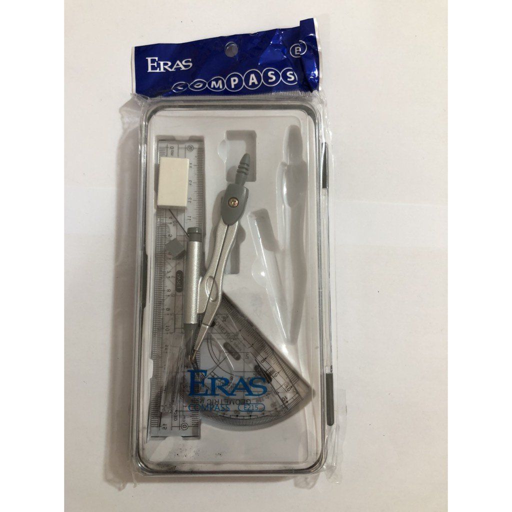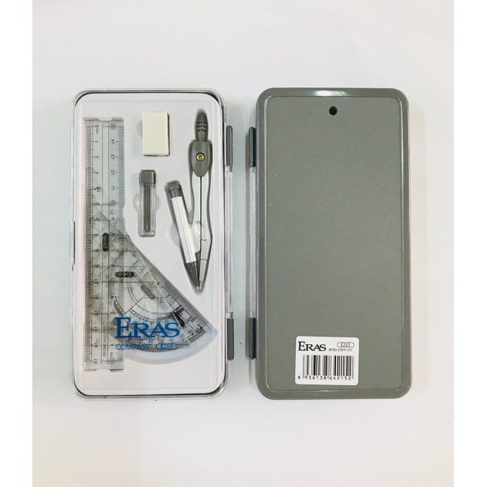 [ERAS] Compas bộ to Eras E215 sản phẩm chính hãng MÔ TẢ SẢN PHẨM: - Thương hiệu: ERAS - Mã sản phẩm: E215ERAS - Bộ Dụng Cụ Thước Và Compas To Eras E215 rất hữu ích và tiện lợi dành cho các bạn học sinh. - Bộ dụng cụ được được trong hộp nhựa trong, bạn có thể dễ dàng nhìn thấy được các vật dụng bên trong hộp, vùa gọn gàng, vừa nhẹ,tiện lợi cho các bạn học sinh mang theo bên mình khi đi học. - Bộ dụng cụ thước và compas bao gồm:. - 1 compas bút chì bấm. - 1 hộp ngòi chì nhỏ. - 1 gôm tẩy. - 1 thước đo độ. - 2 thước ekE 1 thước thẳng 15cm. ----------------------------------------------------------------- * Quý khách vui lòng liên hệ shop để được tư vấn * Hotline - zalo: 0355238747