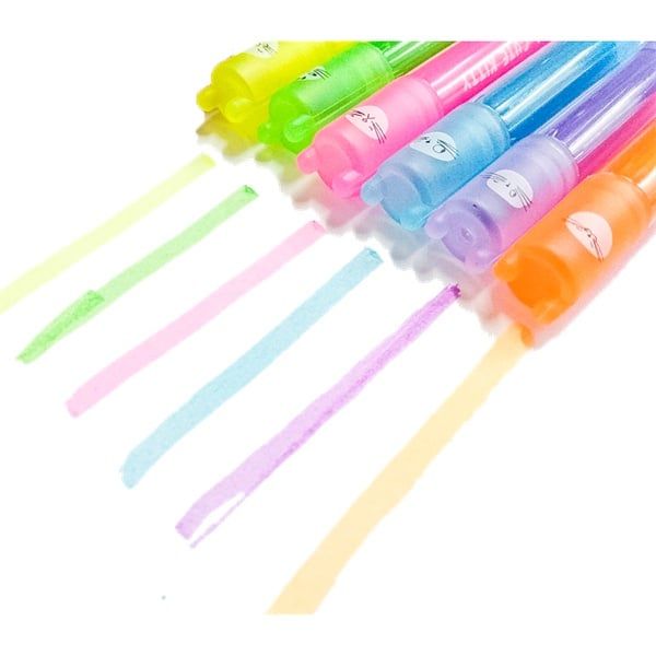 - Màu sắc: 6 màu bút: Xanh lá, Hồng, Cam, Vàng dạ quang, Xanh dương, tím.