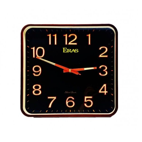 - Đồng hồ treo tường Eras E847 có thiết kế đơn giản theo kiểu truyền thống, hình vuông nền màu đen, viền màu vàng bắt mắt, nổi bật, dễ quan sát.