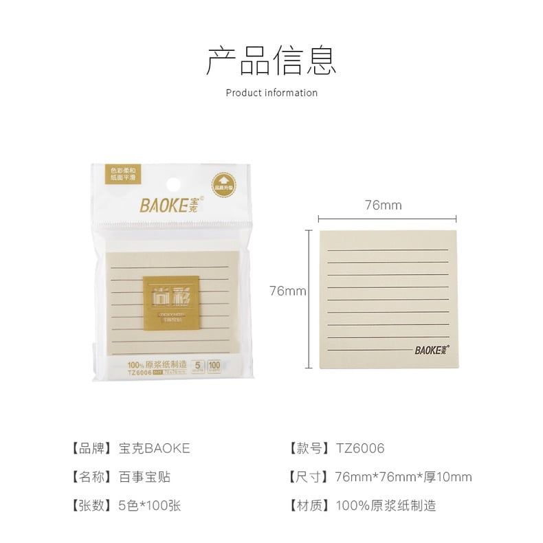 Giấy nhớ note 5 màu pastel có kẻ dòng Baoke TZ6006/TZ6007 kích thước 3x3/3x4 inch 100 tờ/tệp