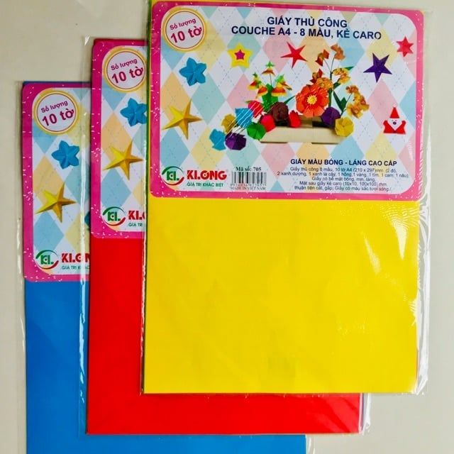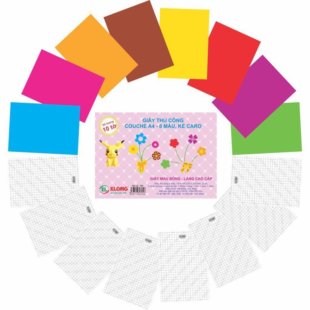 [KLONG] Giấy thủ công 8 màu khổ A4 Klong705 (10 tờ/ tập 400 tập/ thùng) sản phẩm chính hãng MÔ TẢ SẢN PHẨM: - Thương hiệu: KLONG - Mã sản phẩm: Klong705 - Số trang: 10 tờ - Kích thước: A4 (210 x 297)mm
