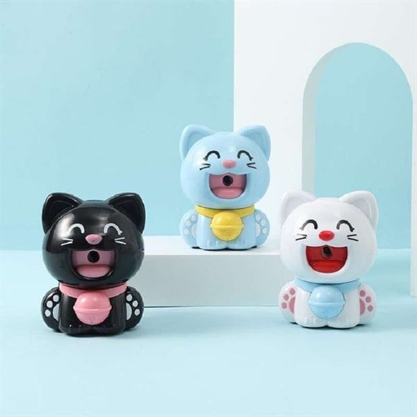Gọt chì quay hình con mèo APS906B8 Mô tả sản phẩm: -Máy gọt bút chì bằng cơ chế quay tay quay. Thiết kế thông minh, chỉ cần cho bút vào lỗ và quay tay là gọt nhanh, gọn. -Kiểu dáng nhỏ nhắn, đơn giản, dễ sử dụng, an toàn. -Lưỡi dao kim loại gọt đầu chì nhọn và không làm gãy ngòi. Chất liệu nhựa an toàn, không độc hại, chịu lực tốt. - Có khay chứa mùn có thể tháo ra vệ sinh, rất đơn giản và sạch sẽ. -Màu sắc đẹp, sáng sủa, hình 2 chú mèo dễ thương.