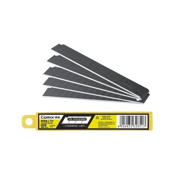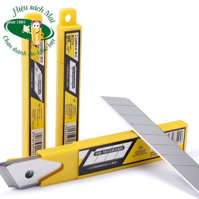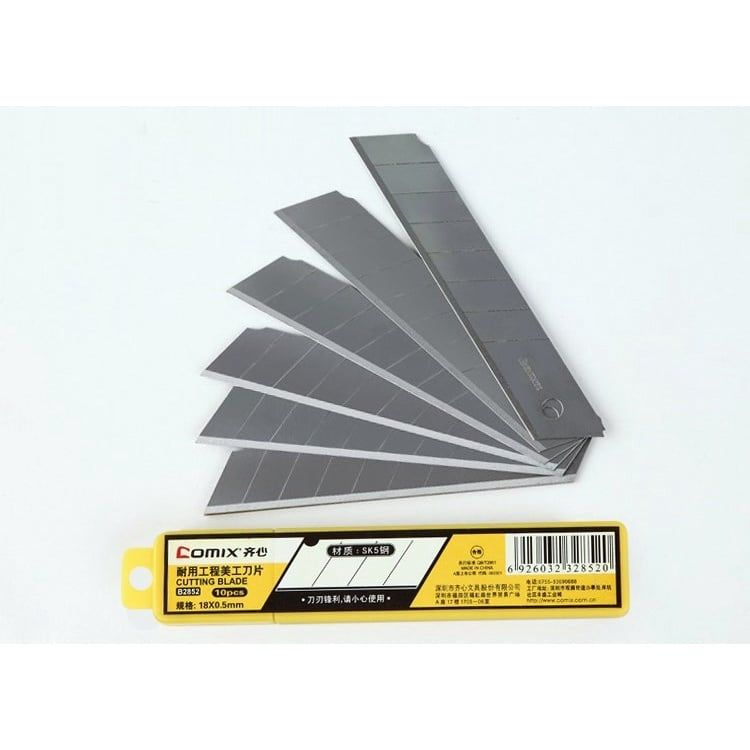 Lưỡi dao rọc giấy Comix Mô tả sản phẩm: - Thương hiệu: BATOS - Mã sản phẩm: BATOSB2852 - Chức năng: thay thế cho các dòng dao rọc giấy 18mm - Sản phẩm phù hợp với nhu cầu của văn phòng, trường học, kiến trúc và các ngành khác (như quảng cáo, thợ điện) - Màu sắc: xám đen - Chất liệu: được làm từ thép SK5, mạnh mẽ, sắc nét và độ bền cao - Độ dày lưỡi dao được kiểm soát chặt chẽ trong khoảng từ 0.48 - 0.52mm, cao hơn so với tiêu chuẩn công nghiệp ----------------------------------------------------------------- * Quý khách vui lòng liên hệ shop để được tư vấn * Hotline - zalo: 0355238747