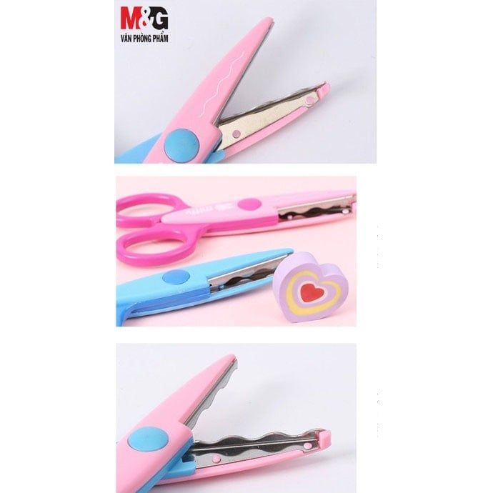 Kéo mỹ thuật răng cưa M&G FSS91301 (12/240) Mô tả sản phẩm: - Kéo nhỏ dành cho học sinh làm thủ công, được làm bằng kim loại không gỉ. - Tay cầm bằng nhựa giúp cắt nhẹ nhàng, không đau tay. - Hai lưỡi đồng được giữ áp sát vào nhau một cách linh hoạt cắt sắc. - Kéo mỹ thuật cắt tạo hình răng cưa, bọc lưỡi rất an toàn khi bỏ trong túi hoặc cất giữ.