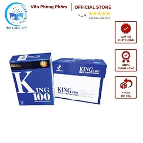 Giấy King 100 - A4 ĐL70gsm / ĐL66gsm (5 reams/thùng) (5/300) (Ream)