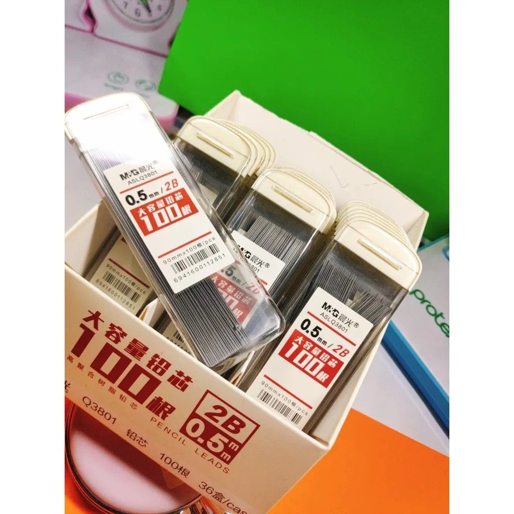 [M&G] Ruột bút chì 2B 0.7 thân dẹt trong bản to ASLQ38012B7/B5 (36/864) MÔ TẢ SẢN PHẨM: - Thương hiệu: M&G - Mã sản phẩm: ASLQ38012 - Ngòi chì 2B nét 0,7mm. - Chiều dài ngòi 9cm. - Đóng gói: 100 cái/ hộp. - Vỏ hộp được làm bằng nhựa tốt bảo vệ phần ruột bút chì bên trong,. - Ruột bút chì làm từ graphit cho độ đậm 2B đạt chuẩn mang lại những chữ viết đậm nét, rõ ràng và mượt mà. -----------------------------------------------------------------