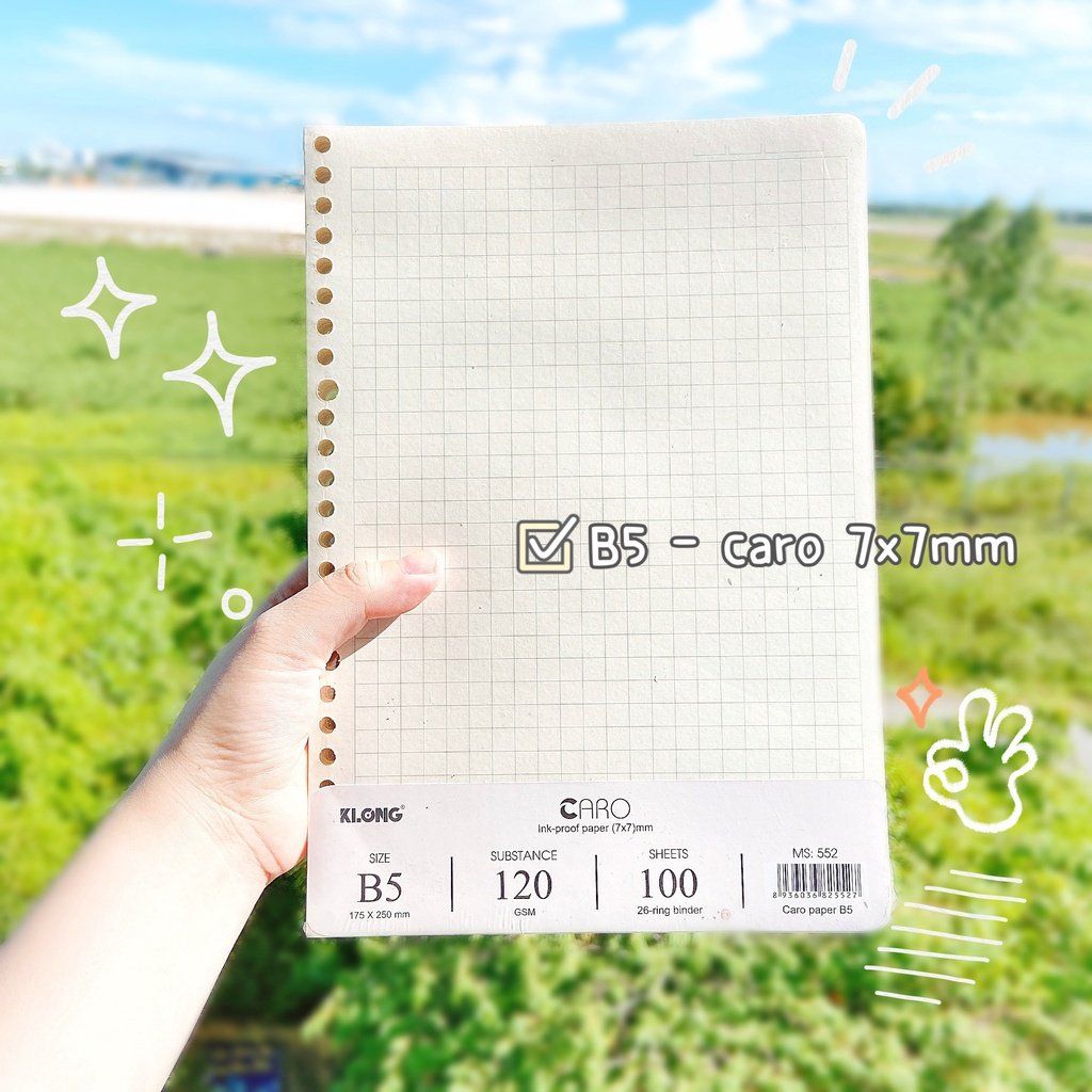 [KLONG] Ruột sổ còng caro Klong996 sản phẩm chính hãng Đặc điểm của Ruột sổ còng caro A5- 100 tờ 120/76 KLong- MS 996: - Điểm nổi bật nhất là giấy có định lượng cao, dày dặn không lo bị nhòe thấm mực, độ trắng của giấy vừa phải không gây nhức mỏi mắt cho người sử dụng. Sản phẩm phù hợp cho các bạn học sinh, sinh viên và dân văn phòng. - Ruột sổ giúp bạn tiết kiệm hơn trong việc dùng sổ viết. Khi bạn dùng hết sổ, chỉ cần giữ lại File còng kẹp Klong và mua thêm ruột sổ gắn vào là có thể tiếp tục sử dụng. - Định lượng: 120g/m2 - Độ trắng: kem 76% ISO - Số trang : 100 tờ - Kích thước: (148 x 210) mm ----------------------------------------------------------------- * Quý khách vui lòng liên hệ shop để được tư vấn * Hotline - zalo: 0355238747 #Văn_phòng_phẩm #M&G #Baoke #Eras#Thiên_Long#Flexoffice