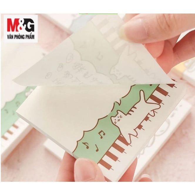 Giấy nhớ in hình mèo M&G Mô tả sản phẩm: - Thương hiệu: M&G - Mã sản phẩm: YS254 - Giấy Note giúp bạn ghi chú các thông tin quan trọng, thông tin bổ sung một cách nhanh chóng. - Sản phẩm có cấu tạo keo dán tiện lợi, dễ dàng dán và gỡ ra, đặc biệt không làm rách giấy. - Chất liệu giấy dày dặn, bề mặt nhám, màu sắc tươi sáng giúp chữ ghi nổi bật, có thể dùng ở bất cứ nơi nào khi cần. - Đặc biệt xấp giấy có nhiều màu, khiến bạn không nhàm chán. - Giúp các bạn quản lý tổ chức kế hoạch trong thời gian dài hạn. - Tiện lợi cho việc mang theo mọi lúc mọi nơi. - Ngay cả trong những lúc bận rộn nhất bạn cũng có thể ghi chú 1 cách dễ dàng. - Có thể giúp bạn đánh dấu trang, tháo dán và gỡ ra dễ dàng nhờ lớp keo mỏng. ----------------------------------------------------------------- * Quý khách vui lòng liên hệ shop để được tư vấn * Hotline - zalo: 0355238747