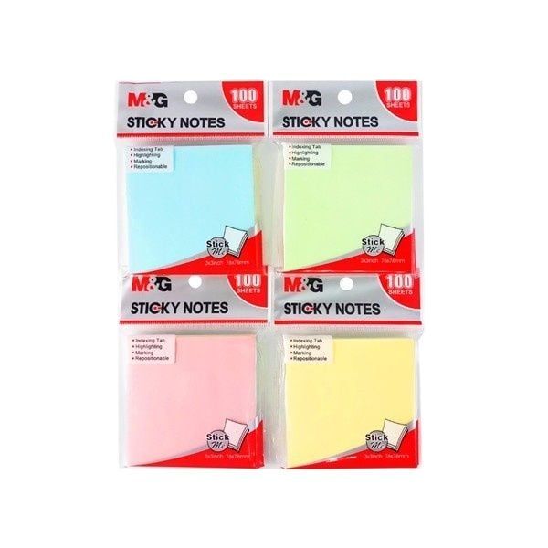[M&G] Giấy nhớ 4 màu bền đẹp màu sắc cực cool MÔ TẢ SẢN PHẨM: - Thương hiệu: M&G - Mã sản phẩm: YS183 - Giúp bạn ghi chú các thông tin quan trọng, thông tin bổ sung một cách nhanh chóng. QUY CÁCH: Tập 4 màu, 100 tờ. - Sản phẩm có cấu tạo keo dán tiện lợi, dễ dàng dán và gỡ ra, đặc biệt không làm rách giấy. - Giấy ghi chú M&G với keo dính thông minh, có thể dán lên và lấy đi dễ dàng mà không để lại keo bẩn. - Giấy bắt mực tốt, không lem, không bị hằn sang trang sau. - Tập 100 tờ với 4 Màu sắc tươi sáng. ----------------------------------------------------------------- * Quý khách vui lòng liên hệ shop để được tư vấn * Hotline - zalo: 0355238747