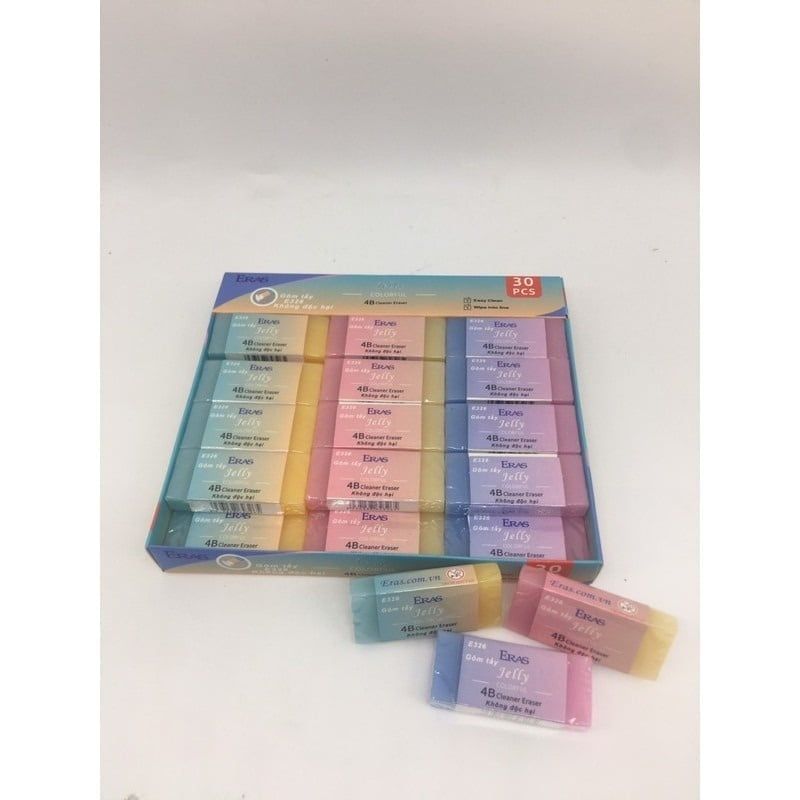 [ERAS] Tẩy màu to Eras E321 sản phẩm chính hãng MÔ TẢ SẢN PHẨM: - Thương hiệu: ERAS - Mã sản phẩm: E321ERAS - Loại To được xử lý bằng các công nghệ hiện đại, không chứa chất độc hại, bụi tẩy se lại thành sợi nên rất sạch sẽ, đồng thời không gây ảnh hưởng đến chất lượng giấy. - Gôm tẩy được cắt gọt khéo léo thành hình khối chữ nhật dễ dàng cầm nắm khi sử dụng. - Tẩy mềm dẻo, không giòn gãy hay khô cứng theo thời gian mà luôn giữ nguyên tính chất mềm mại. - Khả năng bào mòn ít, có thể sử dụng lâu dài. - Sản phẩm là một trong những vật dụng cần thiết và không thể thiếu trong học tập, làm việc, đặc biệt là vẽ kỹ thuật. ----------------------------------------------------------------- * Quý khách vui lòng liên hệ shop để được tư vấn * Hotline - zalo: 0355238747