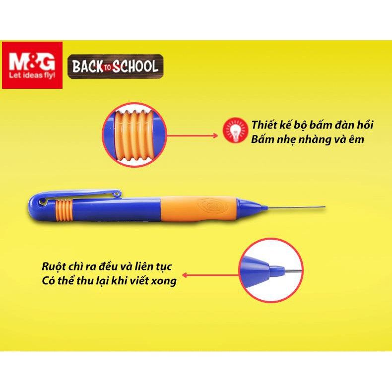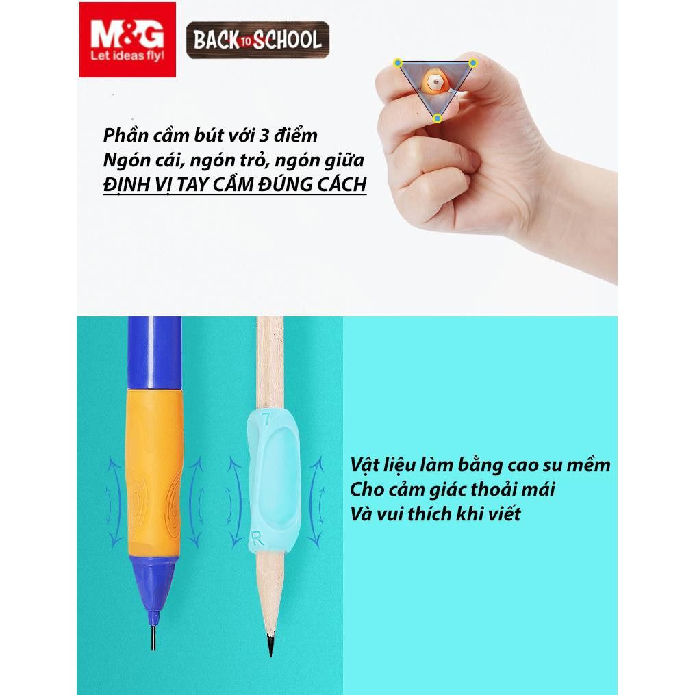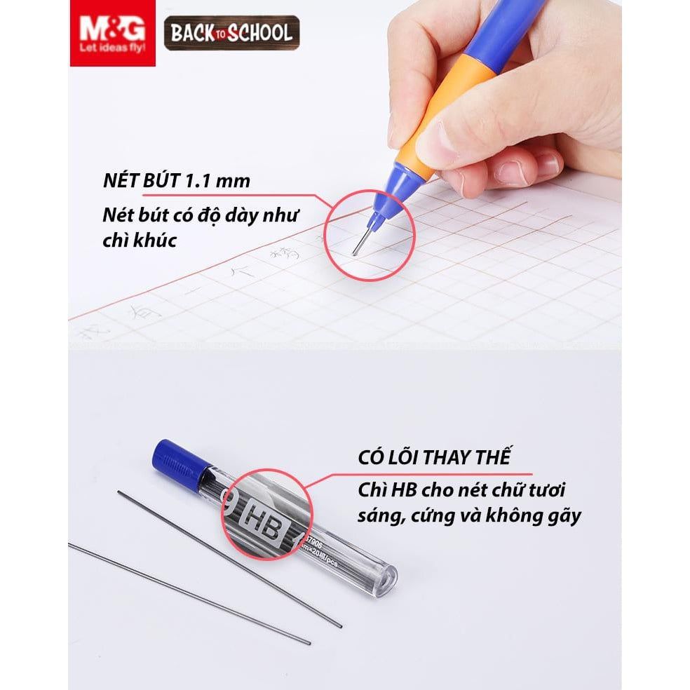 Bút chì kim tay cầm định vị, kháng khuẩn. Nét bút 1.1mm, độ dày nét bút như chì khúc, cho bé có nét chữ rõ nét. Chì HB có nét cứng, cho nét chữ tươi sáng, không gãy. Phần tay cầm định vị, giúp bé cầm bút đúng cách, dễ viết, phần vân tay kháng khuẩn đặc biệt. Thiết kế chất liệu cao su mềm cao cấp, tạo cảm giải thoải mái, thích thú khi viết. Hãy sở hữu để cảm nhận. Chào năm học mới với chì kim cao cấp M&G. Là sản phẩm chì kim chính hãng M&G Chuyên cung cấp các sản phẩm liên quan đến VPP, đồ dùng HS thương hiệu M&G cho các nhà phân phối, đại lý, nhà sách trên toàn lãnh thổ Việt Nam Hãy thử trải nghiệm công nghệ mới của M&G.