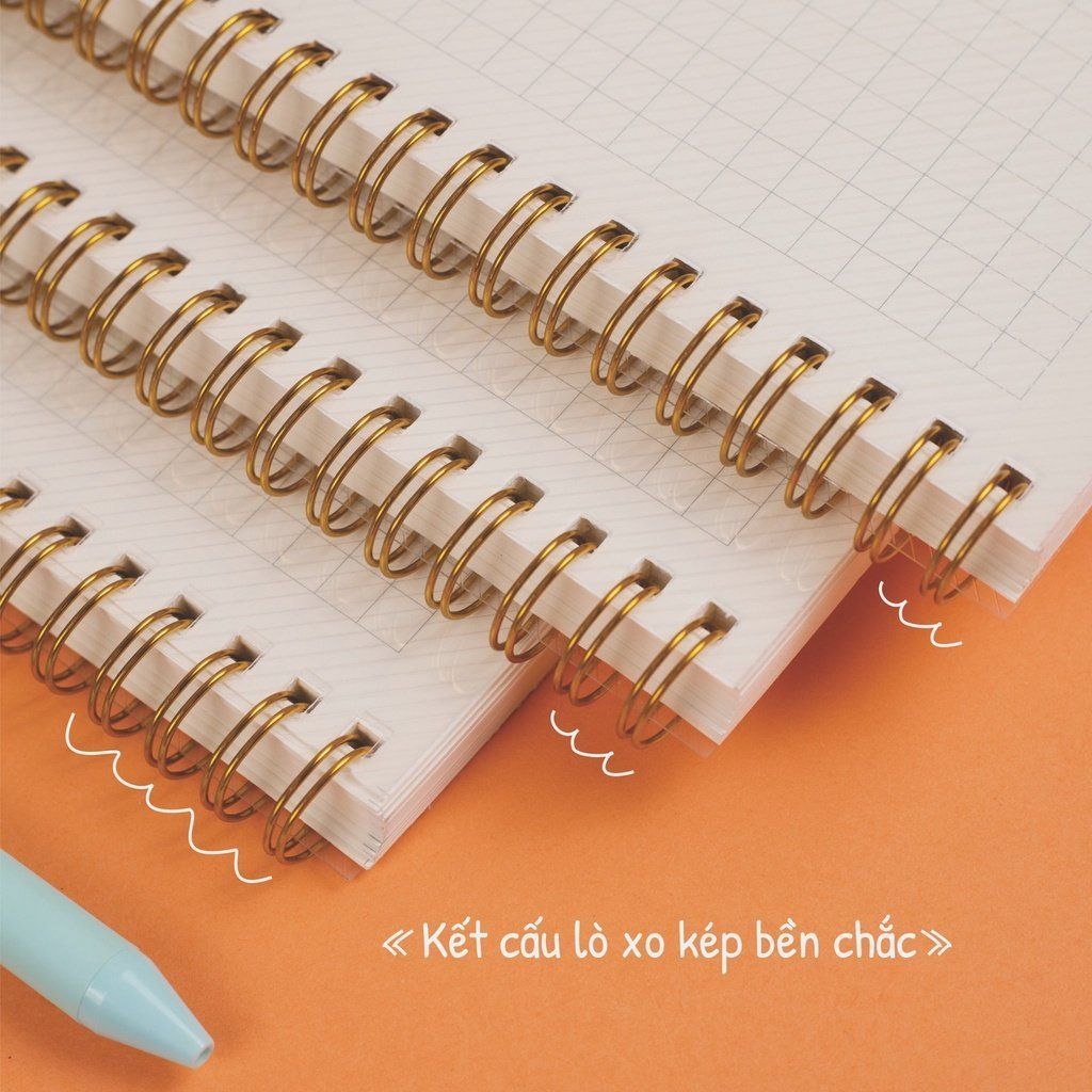 - Kết cấu lò xo kép màu vàng ánh ngọc trai với bìa nhựa viền chéo PP tạo sự đơn giản nhưng chắc chắn, tiện lợi và sang trọng;