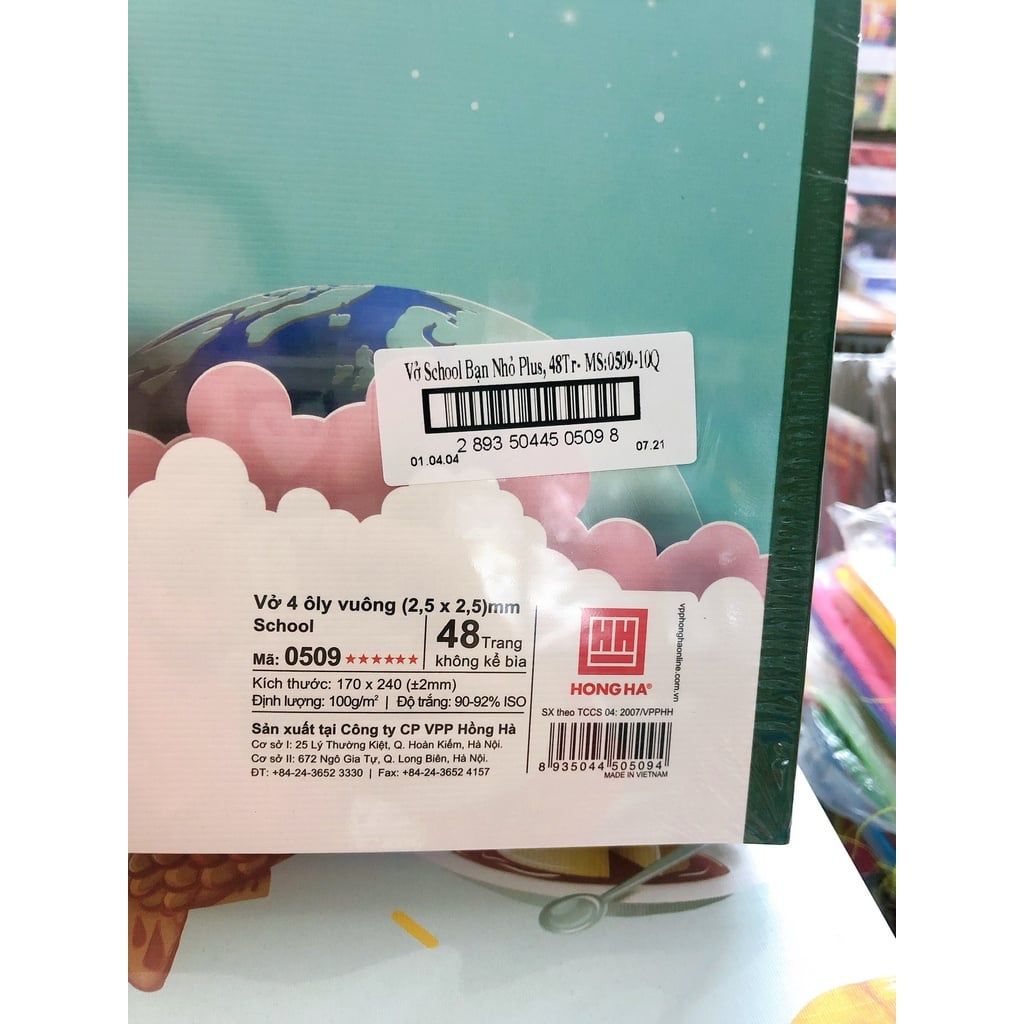Vở ô ly Hồng Hà School Bạn nhỏ 0509 - một trong những sản phẩm vở ô ly được yêu thích nhất Tính năng nổi bật: Vở ô ly Hồng Hà School Bạn nhỏ 0509 được thiết kế phù hợp cho học sinh tiểu học, tập viết chữ. Bìa vở được điểm những màu sắc rực rỡ, phù hợp với xu hướng kết hợp với những hình ảnh ngộ nghĩnh, đáng yêu. Bề mặt giấy láng mịn, viết êm tay, tạo nét chữ đẹp. Giấy viết không tạo cảm giác cợn, không nhòe, không thấm mực sang trang sau, tốt cho người sử dụng. Thông tin chi tiết sản phẩm: ️ Dòng kẻ: 4 ô ly vuông (2.5 * 2.5) mm chống lóa ️ Kích thước: 170 * 240 (±2mm) ️ Số trang: 48 trang không kể bìa ️ Định lượng: 100g/m² ️ Độ trắng: 90 - 92%ISO ️ Đóng gói: 10 quyển/lốc - 160 quyển/thùng ️ Sản xuất: Hồng Hà ️ Xuất xứ: Việt Nam