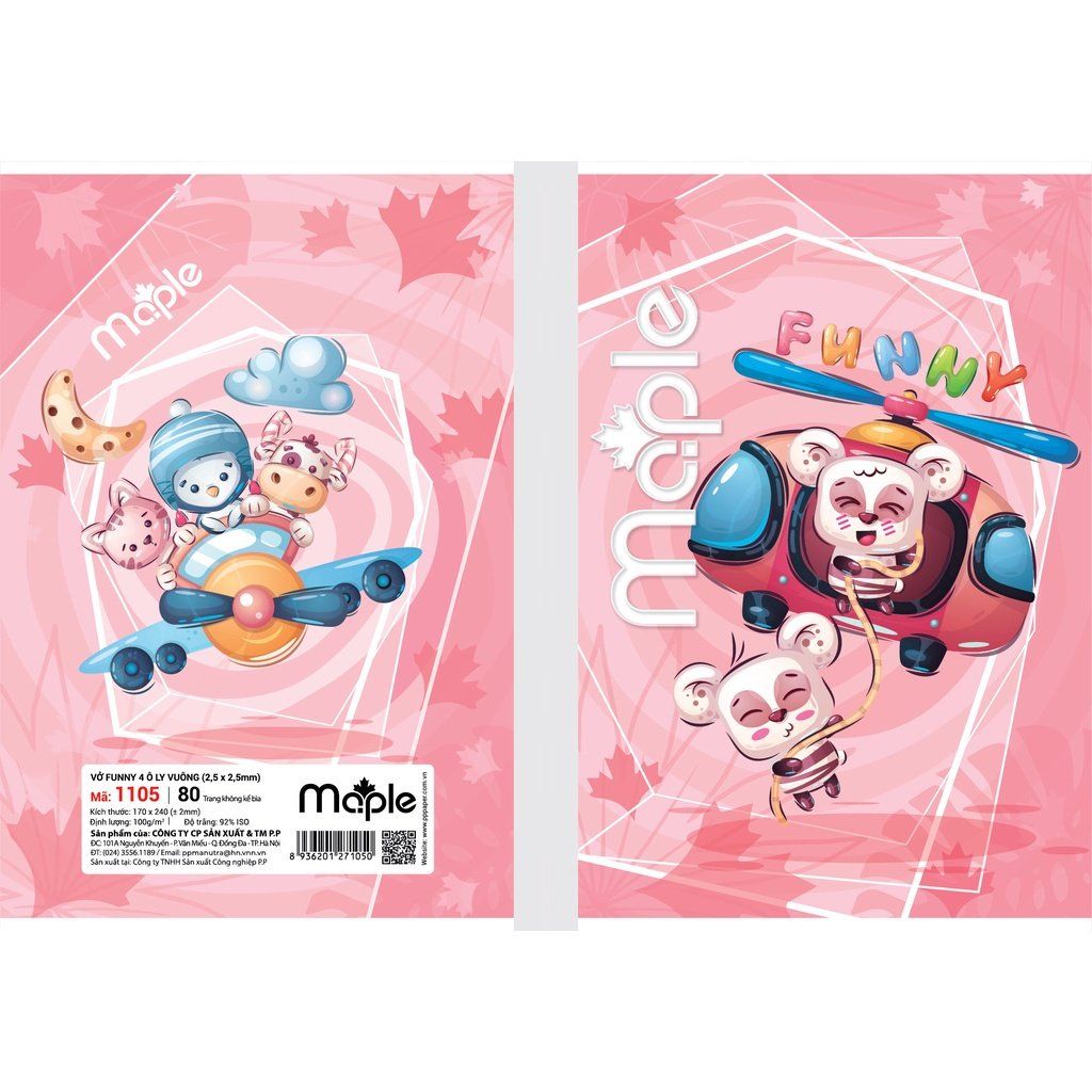 [MAPLE] Vở Ôly 80 Trang Maple (5/80) Sản Phẩm Chính Hãng MÔ TẢ SẢN PHẨM: - Thương hiệu: MAPLE - Mã sản phẩm: MP1105 - Vở ô ly MaplE Vở 4 ô ly vuông. - Xuất xứ: Việt Nam. - Kích thước: 170 x 240mm. - Kích thước: ô ly: 2,5 x 2,5mm. - Định lượng: 100g/m2. - Độ trắng: 92% IOS. - Số Trang: 48/80 trang không kể bìa. - Vở 4 ô ly Maple Là sản phẩm đặc biệt phù hợp với các bạn học sinh tiểu học. - Thiết kế: Dòng kẻ ô ly, có độ sắc nét cao, giúp các em học sinh căn chỉnh chính xác cỡ chữ, dễ dàng luyện viết chữ đẹp. - Chất liệu: Giấy dày, mịn, viết êm tay, tạo nét chữ đẹp. - Đồng thời, giấy viết không bụi, không nhòe, không thấm mực sang trang sau. - Bìa vở: Bìa IVORY. - Định lượng 230. - Thiết kế đẹp mắt, ấn tượng với hoạ tiết bắt mắt, nhiều Màu sắc cùng các con vật ngộ nghĩnh, giúp kích thích sự sáng tạo và niềm hứng thú học tập của trẻ. ----------------------------------------------------------------- * Quý khách vui lòng liên hệ shop để được tư vấn * Hotline - zalo: 0355238747#Thiên_Long#Flexoffice