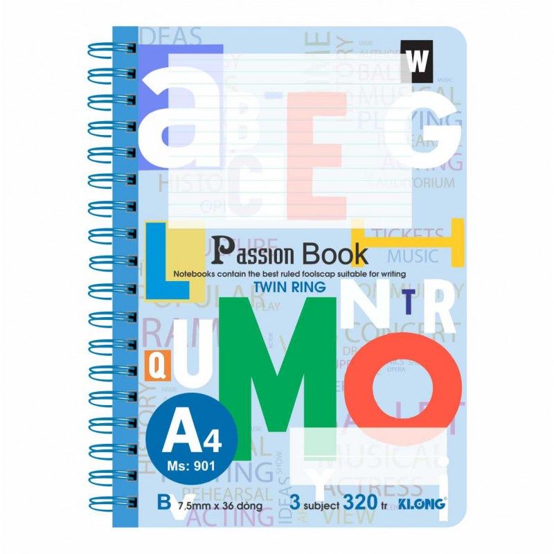 [KLONG] Sổ lò xo kép bìa nhựa Passion 320 trang A4 ĐL 70 Klong901 (30Q/ thùng) sản phẩm chính hãng MÔ TẢ SẢN PHẨM: - Thương hiệu: KLONG - Mã sản phẩm: Klong901 - Sổ liên kết bởi lò xo kép nhiều màu,mềm mại,dễ mở, tạo độ phẳng,đồng đều khi viết, đọc; thân thiện môi trường (dễ tái chế); Số trang sổ lớn (320 trang),được thành 05 subject ghi chép được nhiều mục, thông tin;Bìa sau được bồi nhiều lớp (700g/m2) tăng độ cứng, bảo vệ ruột sổ khi sử dụng;Sổ được cắt góc đảm bảo không bị quăn mép trong quá trình sử dụng; Sổ được thiết kế 02 mẫu bìa, được bảo vệ bởi màng nhựa tăng thẩm mỹ, chống bụi bẩn khi sử dụng và phù hợp với học sinh, nhân viên văn phòng để học tập và ghi chép. - Lưu ý nhỏ: Shop sẽ giao hàng với các màu ngẫu nhiên. ----------------------------------------------------------------- Quý khách vui lòng liên hệ shop để được tư vấn * Hotline - zalo: 0355238747