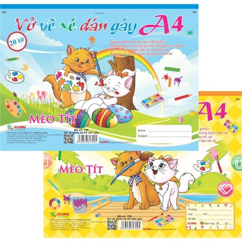 Vở vẽ dán gáy xé KLONG A4 20 tờ 100/76 MS 709 sản phẩm chính hãng(Giao màu ngẫu nhiên)